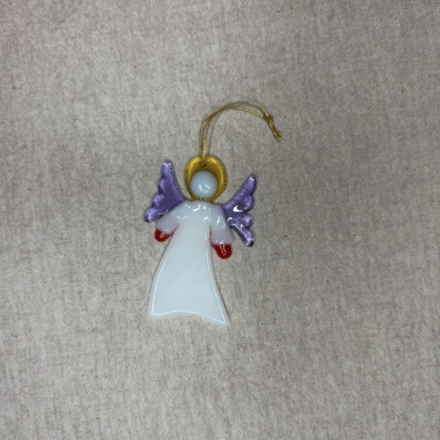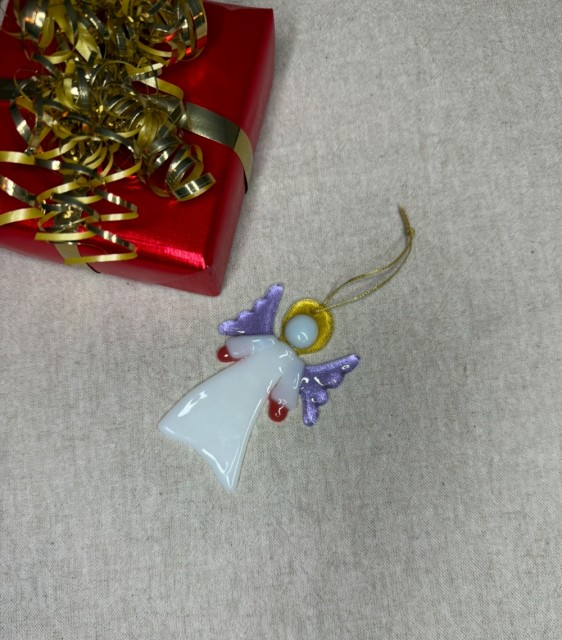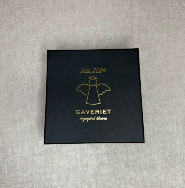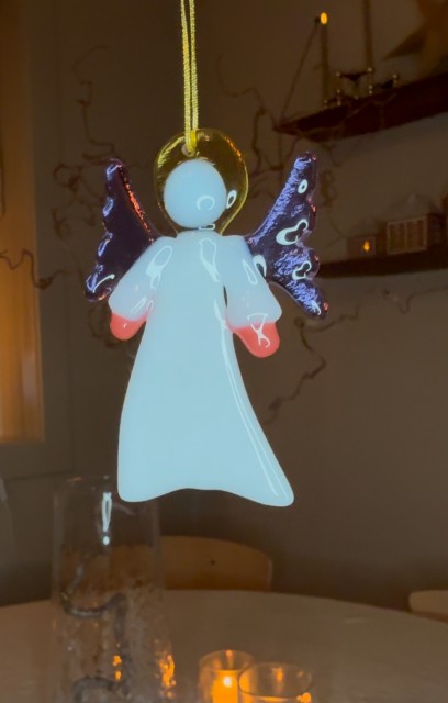 Når ein idé vert verkelegheit! Årets englar er trylla fram av dyktige Ingegerd Moene, som produserar vakker glaskunst i alle moglege fasongar. Materiale: Glass. Størrelse: ca 8,5cm høg og 6cm brei. Gaveøskje medfølgjer.