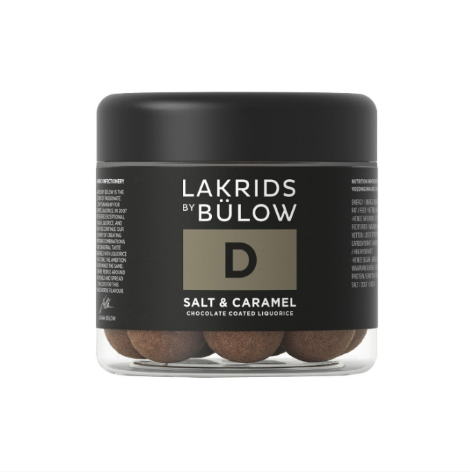 Vi advarer på forhånd om at lakris kombinert med karamell og havsalt er en uimotståelig smaksopplevelse. Vi har drasjert en kjerne av søt lakris i karamellisert dulcesjokolade og smakt til med knasende flak av havsalt. 125g.