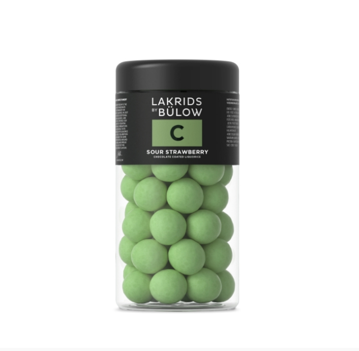 Forestill deg nyplukkede grønne jordbær sammen med utsøkt rød lakris i en søt, fruktig bit. Nyt hvordan friske og syrlige toner fra sprø, grønne jordbær balanseres perfekt med seig, rød lakris, alt omsluttet av silkemyk, hvit sjokolade og et knasende....