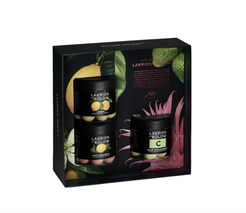 Unn deg selv en fruktig kurv med sjokoladebelagt gourmetlakris, og drøm deg bort til en tropisk ferie. Med sprø PINK PINEAPPLE, saftig LEMON og uimotståelig SOUR STRAWBERRY, er denne BLACK BOX en fantastisk gave til noen du setter pris på –