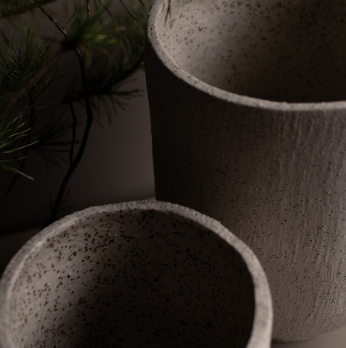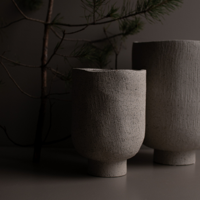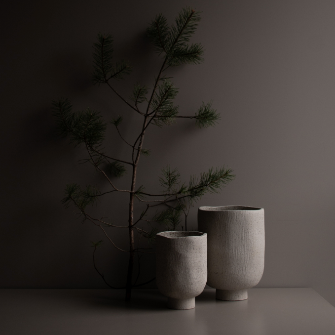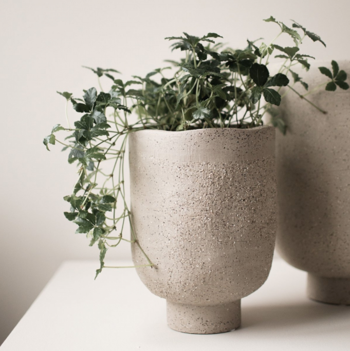 Det er en deilig kombinasjon med å blande det grove og det fine. Denne blomsterpotten fra DBKD har ujevne kanter og en ru overflate- og kan ligne litt på en steinpotte. RÅLEKKER!