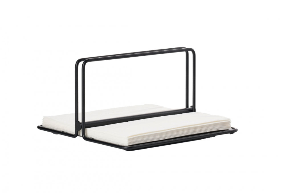 Serviettholderen er også en hyggelig innredningsdetalj på bordet. Serviettholderen kan holde servietter i alle mulige størrelser, sånn at det er bare å fylle på med de fineste serviettene du finner og by inn til middag. Seriviettholderen gir en spesiell touch til alle typer av borddekkingen. Finnes i fargene svart og grått.