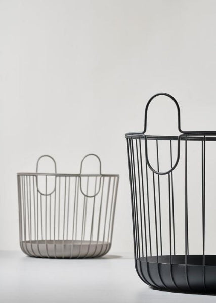 Flott metallkurv til håndklær eller skittentøy på badet, puter, tepper og magasiner i stua – eller til store grønne planter overalt i hjemmet. Kurvene finnes i to størrelser, som kan stables. Det er elegant interiør som gir øyet ro. Kurv Inu 40,6 x 41,1 cm.