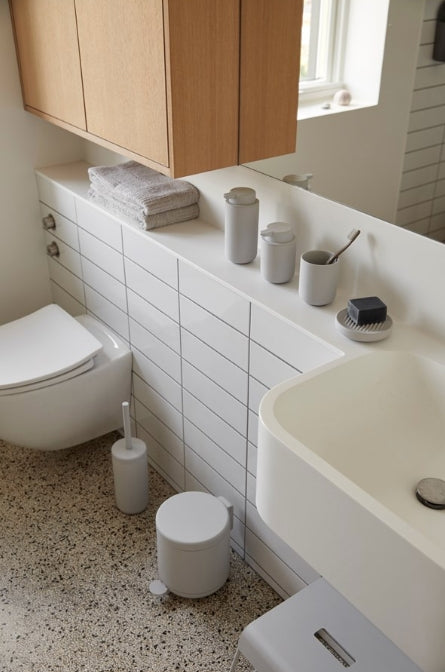 Det fargede tannbørstekruset i steintøy fra den prisbelønte badeserien Ume utstråler luksus og spa-atmosfære med sin uimotståelige, deilige myke berøringsoverflate og en myk design som gleder både øye og fingre. Diameter 8,3 cm, høyde 10,3 cm.