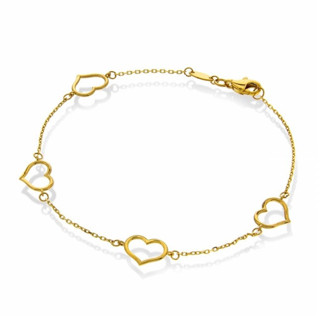Armbånd i 585 gult gull med hjerter. Lengde: 17+2cm. Bredde: 6mm.