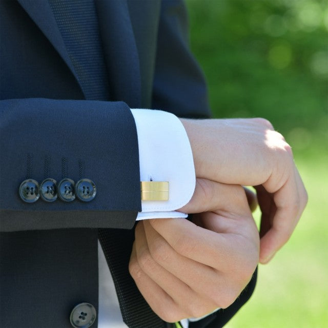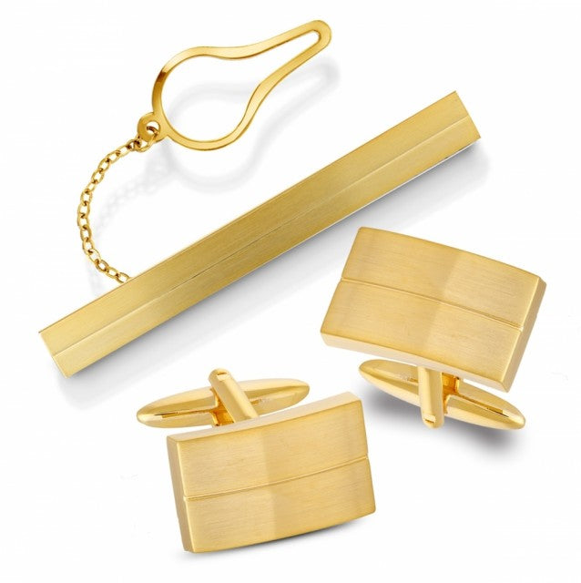 Sett med slipsnål og mansjettknapper, forgylt stål
