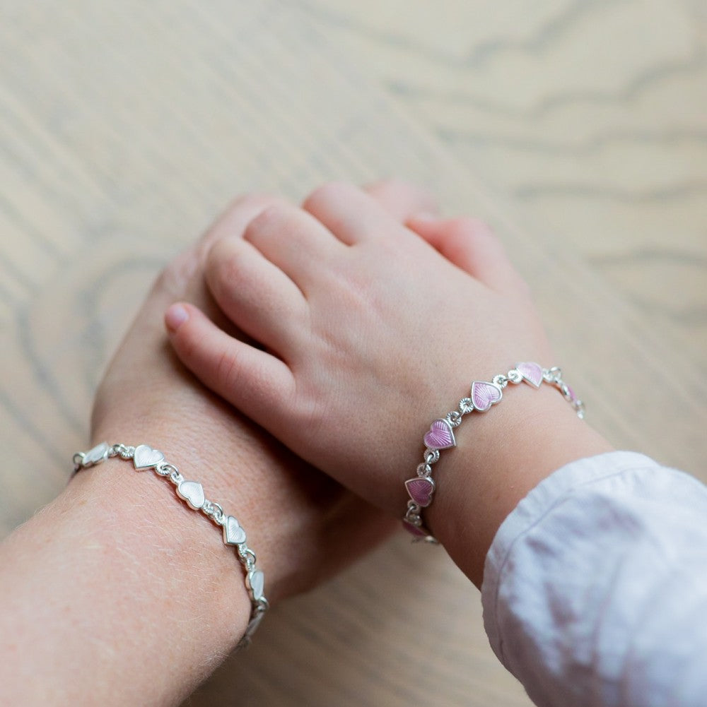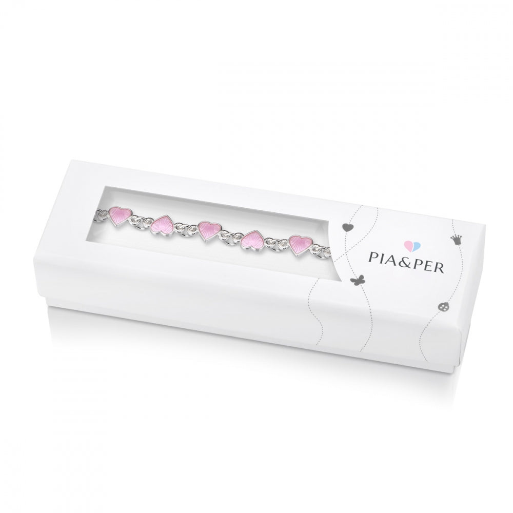 Helarmbånd i sølv, Rosa hjerter