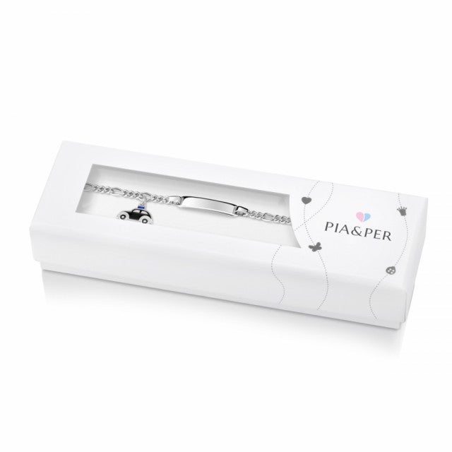 Pia & Per ID-armbånd i sølv, Svart politibil