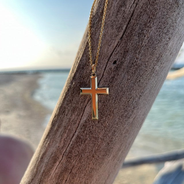 Kors anheng i 14k gull. Høyde: 24 mm.