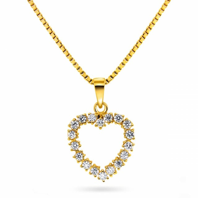Smykke i 14k gull med hvite zirkonia, hjerte. H: 19 mm. B: 13 mm.