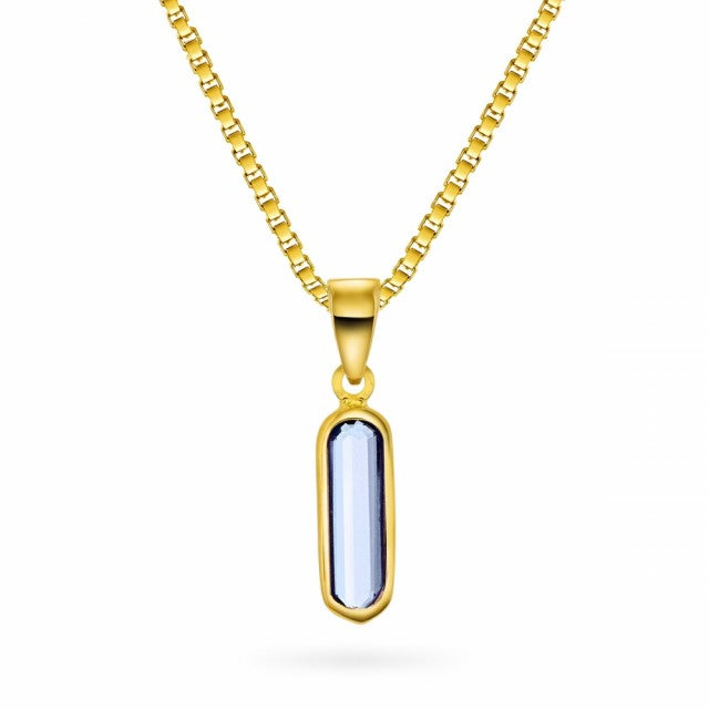 Smykke i 14k gult gull med himmelblå kvarts. Høyde: 21 mm.