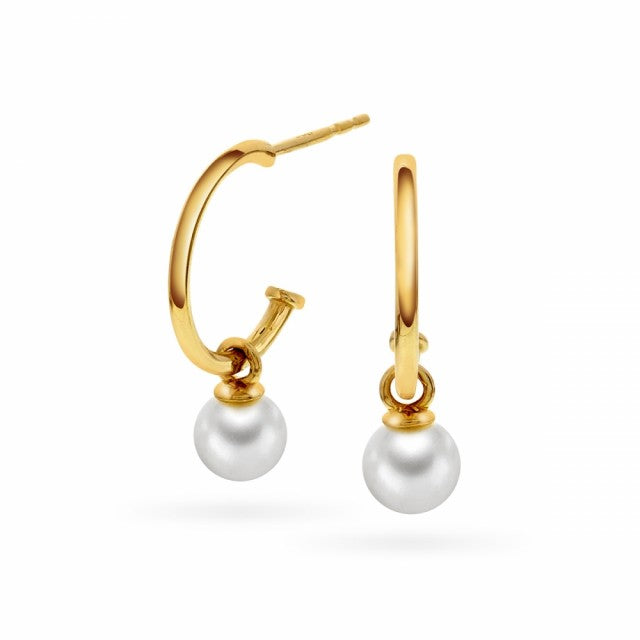 Halvkreoler i 14k gult gull med perleheng. Diameter: 11 mm.