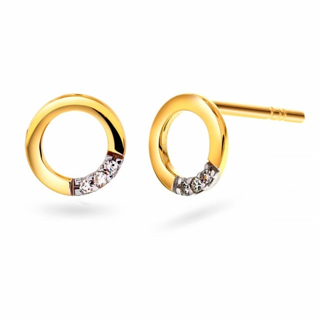 Øredobber sirkel i 585 gult gull med diamant 0,02 ct. Bredde: 6 mm.