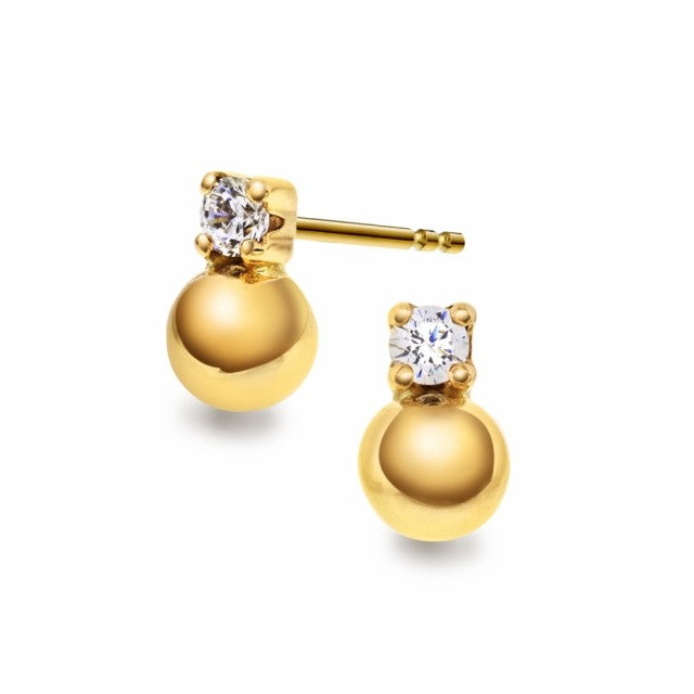 Ørestikk kule i 585 gult gull med zirkonia. Høyde: 6mm.