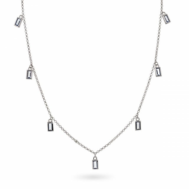 Halskjede i sølv med lys blå zirkonia, 40+5 cm