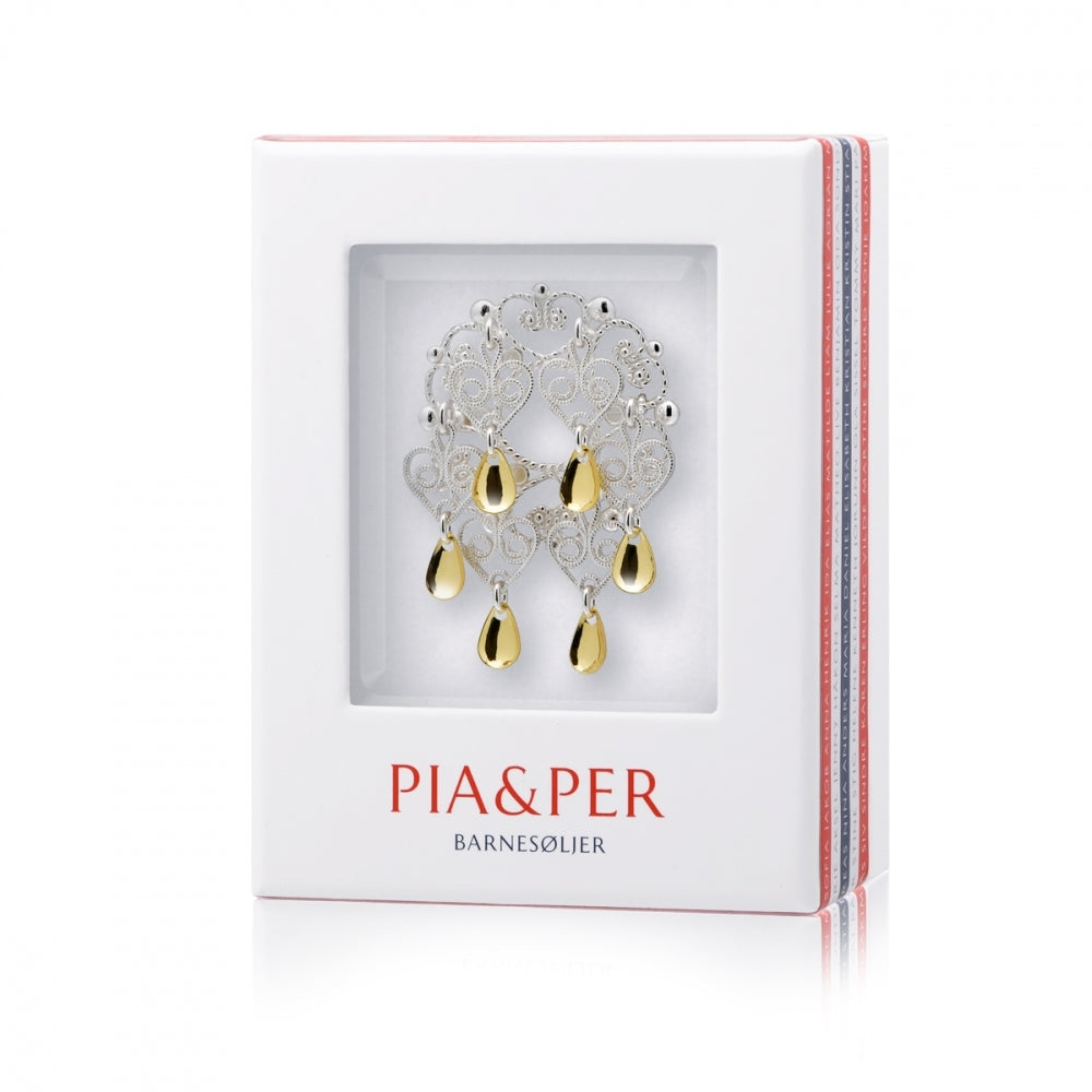 Pia & Per Barnesølje, hvit m/heng og forgylte løv