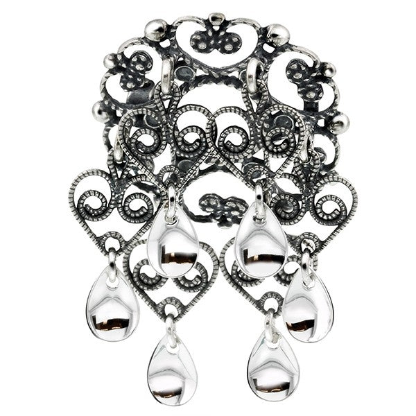 Detaljer: Seks heng, seks dråpeformede løv, nål og stift på baksiden