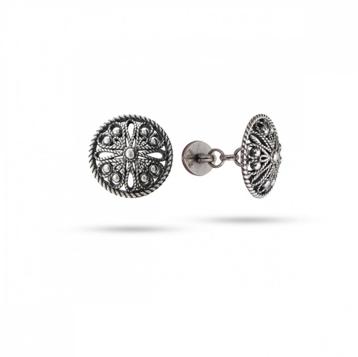 Mansjettknappene passer like godt til tradisjonsrike bunader som til nye festdrakter og stakker. Mansjettknappene kan brukes til både Ingrid- og Solveig-søljene. Bredde: 15 mm.