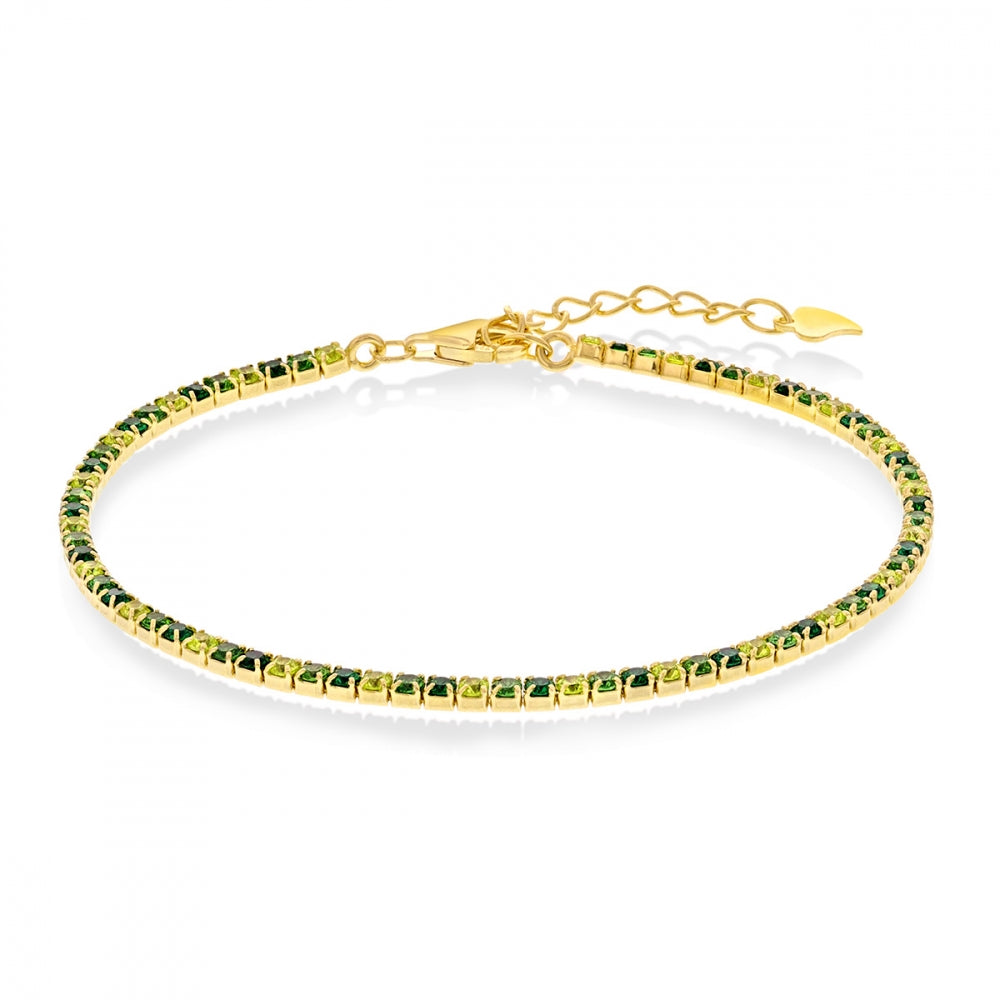 Armbånd i 925 forgylt sølv med grønne zirkonia.