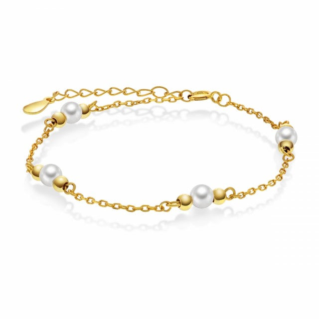 Armbånd i forgylt sølv med perler. Lengde: 17+3 cm.