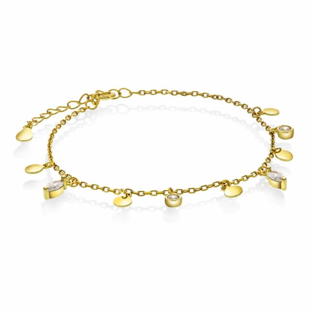 Armbånd i forgylt sølv med zirkonia. Lengde: 17+3 cm.