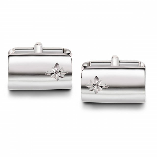Mansjettknapper i rhodinert sølv med metall-bakstykke. H: 10 mm, B: 17 mm. Kommer i gaveeske.