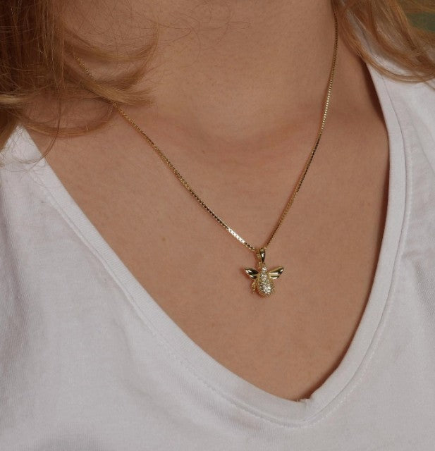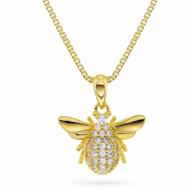 Smykke i forgylt sølv med zirkonia, Bie, fra Arne Nordlie. H: 16 mm, B: 15 mm.