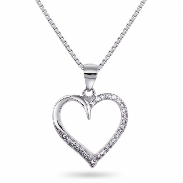 Smykke i 925 rhodinert sølv med zirkonia og hjerte. Veneziansk kjede i sølv på 45cm medfølger.