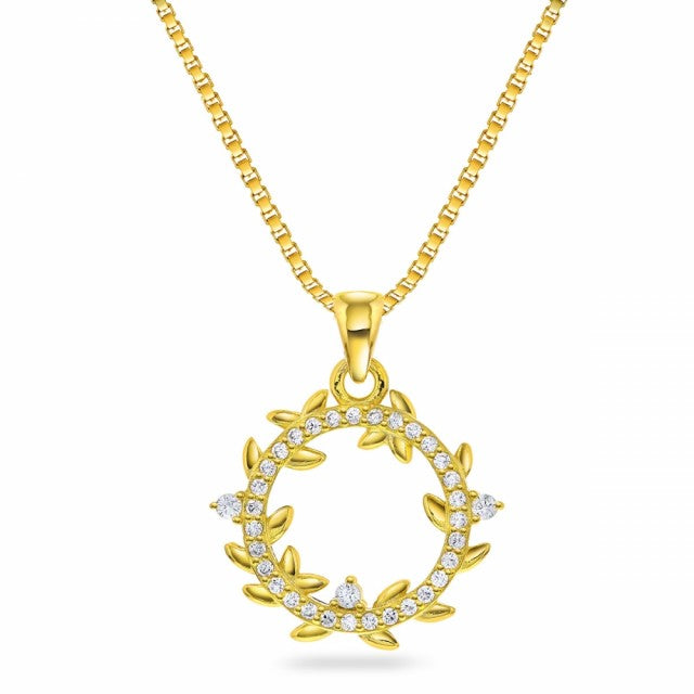 Smykke i forgylt sølv 925 med zirkonia, formet som en krans. Bredde: 17 mm.
