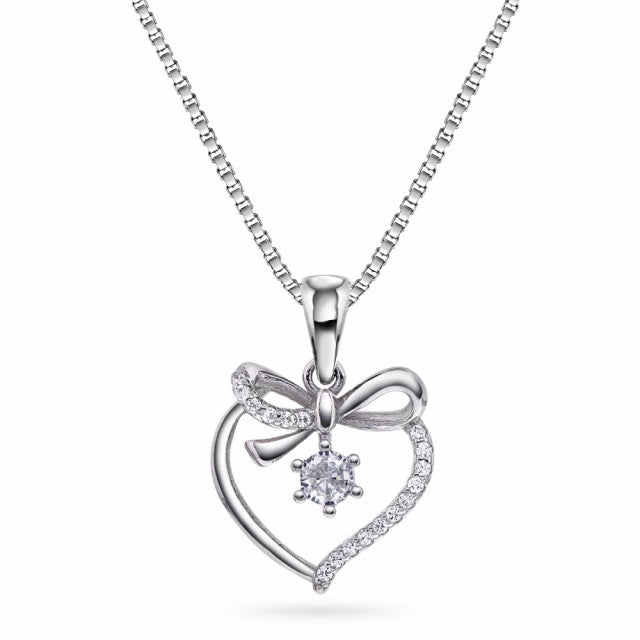 Smykke i rhodinert sølv med zirkonia og hjerte.