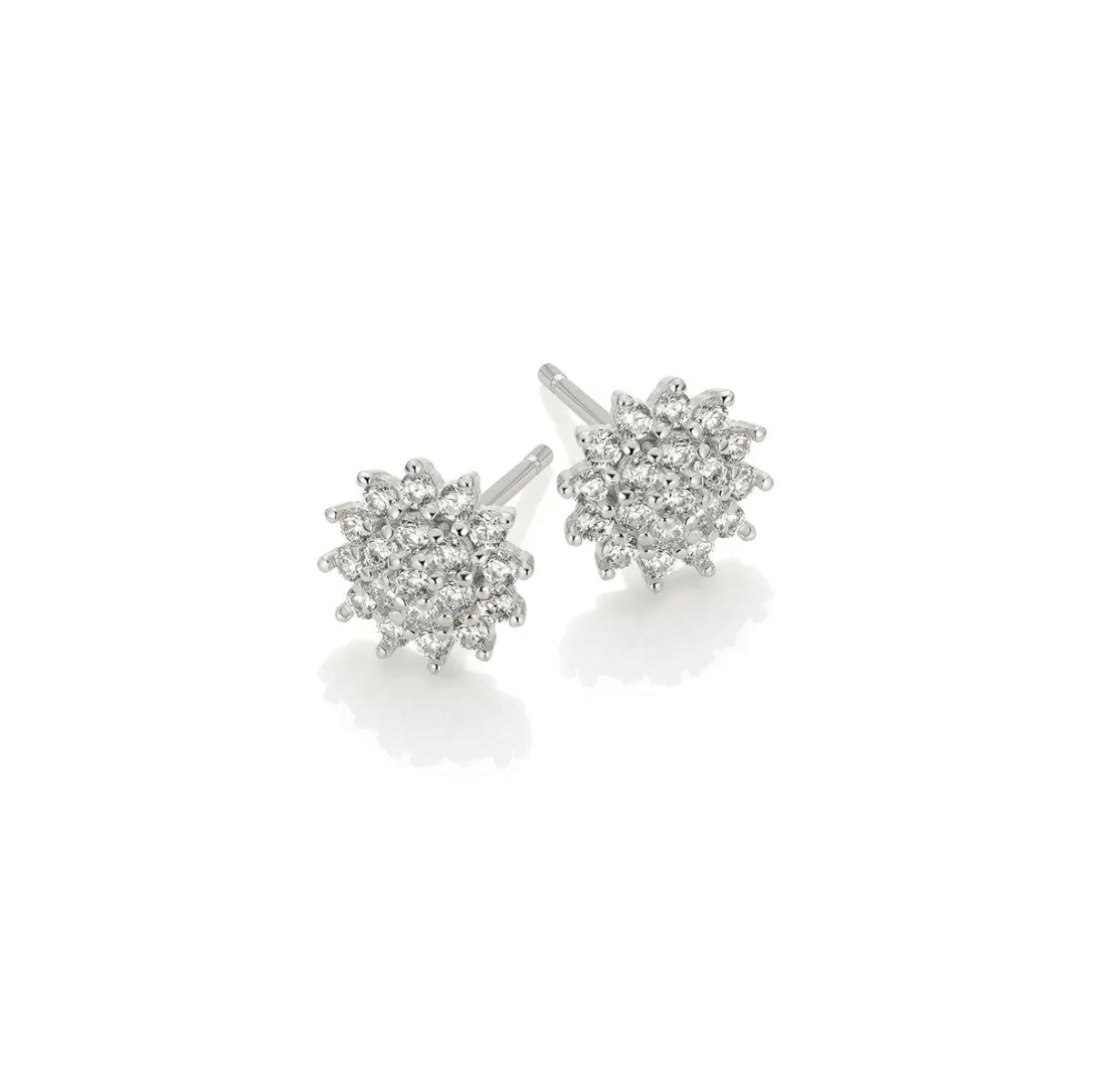 Øredobber i rhodinert sølv med zirkonia - rosett. B: 7 mm.