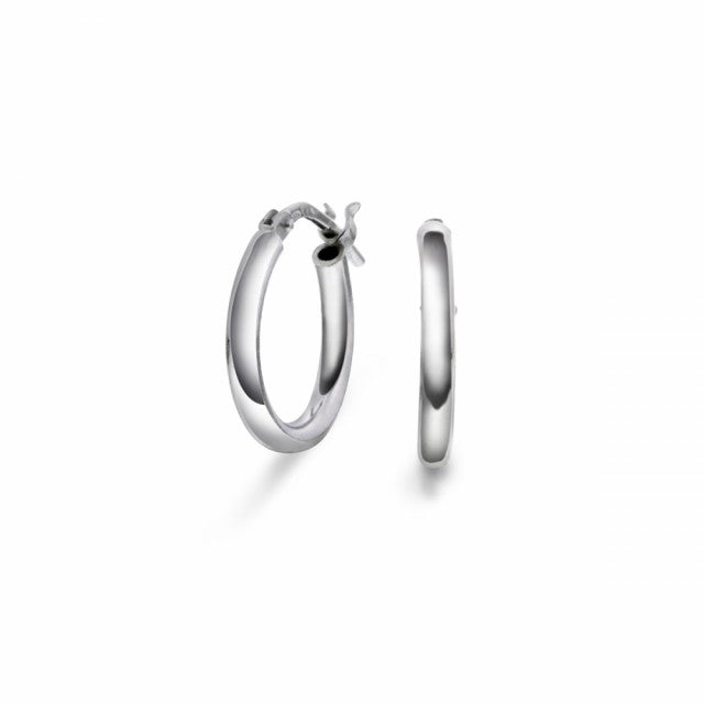 Øreringer i rhodinert sølv. Diameter: 15 mm. Bredde: 2 mm.