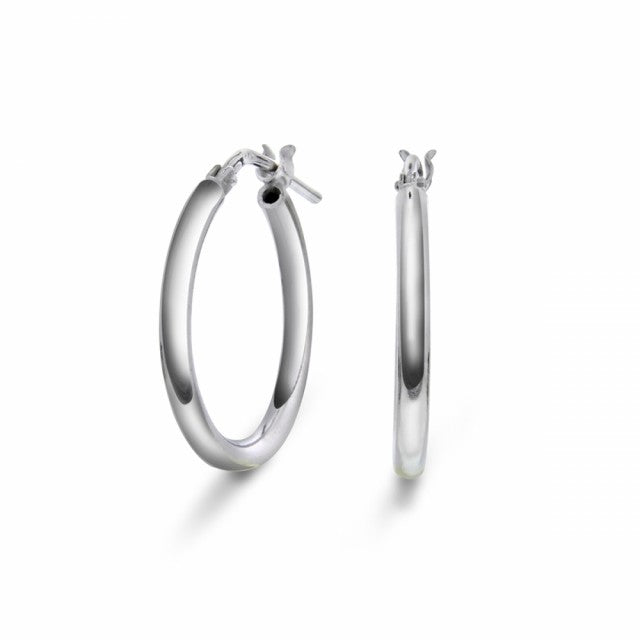 Øreringer i rhodinert sølv. Diameter: 20 mm. Bredde: 2 mm.