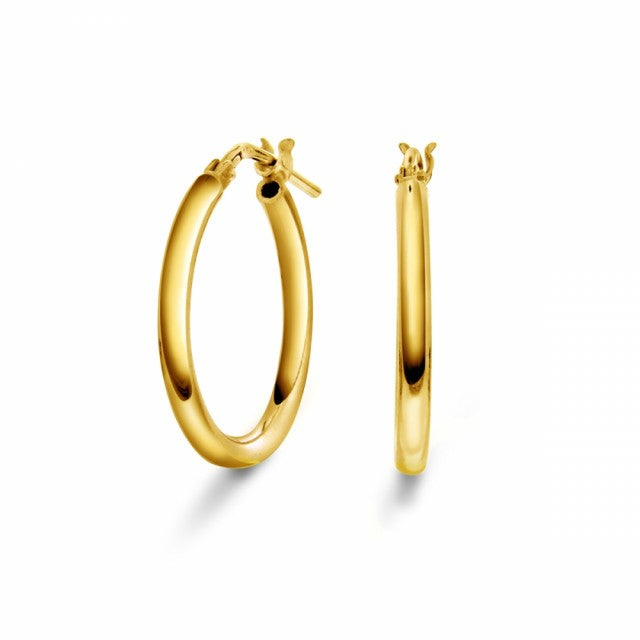 Øreringer i forgylt sølv. Diameter: 20 mm. Bredde: 2 mm.