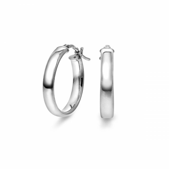 Øreringer i rhodinert sølv. Diameter: 20 mm. Bredde: 3 mm.