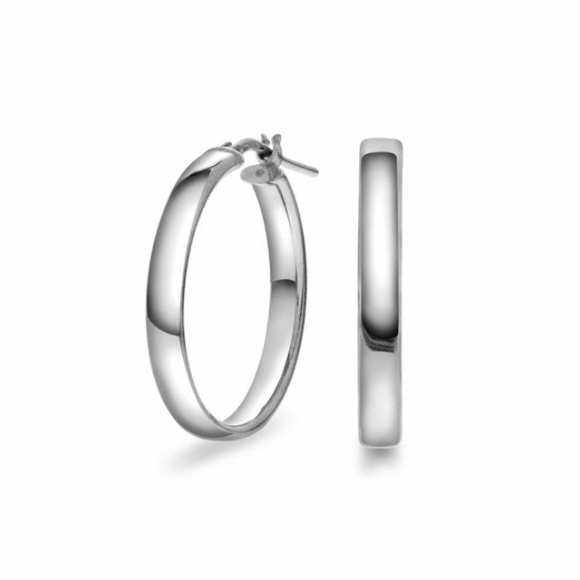 Øreringer i rhodinert sølv. Diameter: 25 mm. Bredde: 3 mm.
