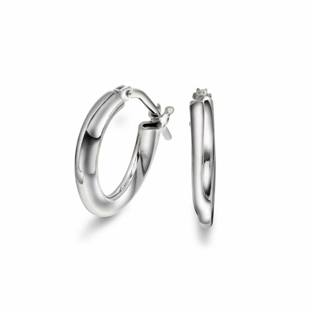 Vridde øreringer i rhodinert sølv. Diameter: 15 mm.
