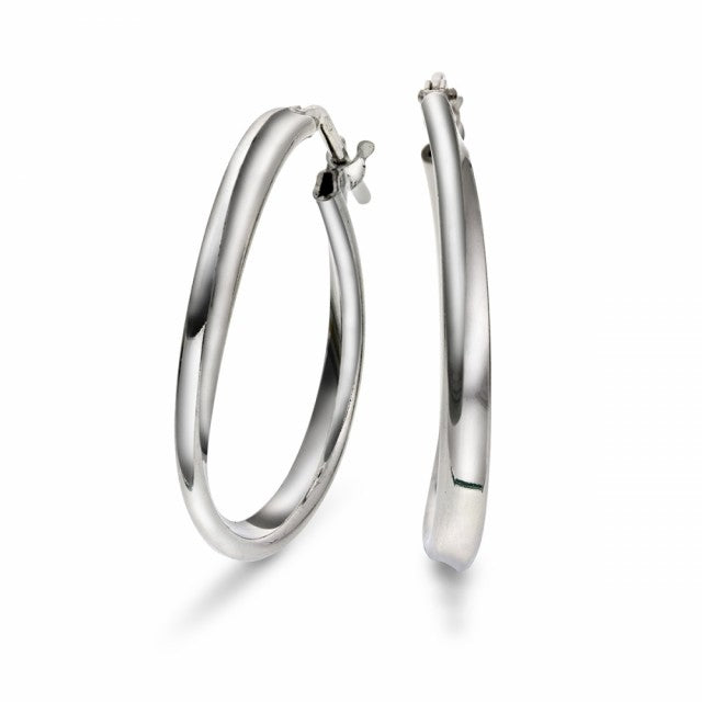 Vridde øreringer i rhodinert sølv. Diameter: 25 mm.