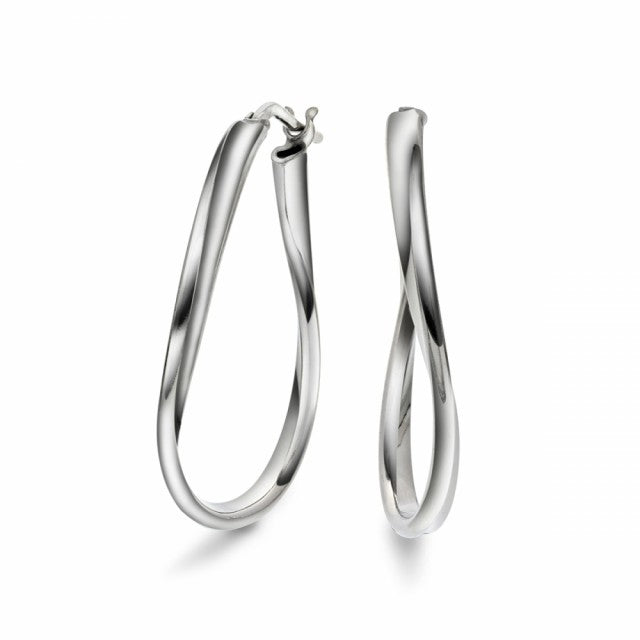 Vridde øreringer i rhodinert sølv. Diameter: 30 mm.