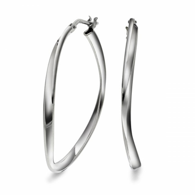 Vridde øreringer i rhodinert sølv. Diameter: 35 mm.