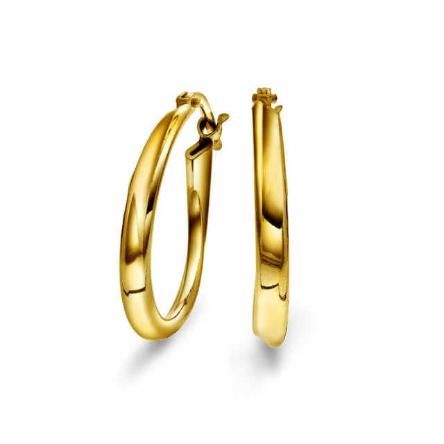 Vridde øreringer i forgylt sølv. Diameter: 20 mm.