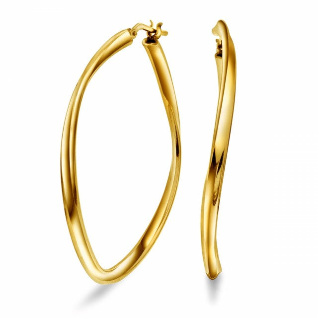 Vridde øreringer i forgylt sølv. Diameter: 40 mm.