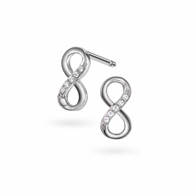Øredobber i rhodinert sølv med zirkonia - Evighet. B: 9 mm. H: 4 mm.