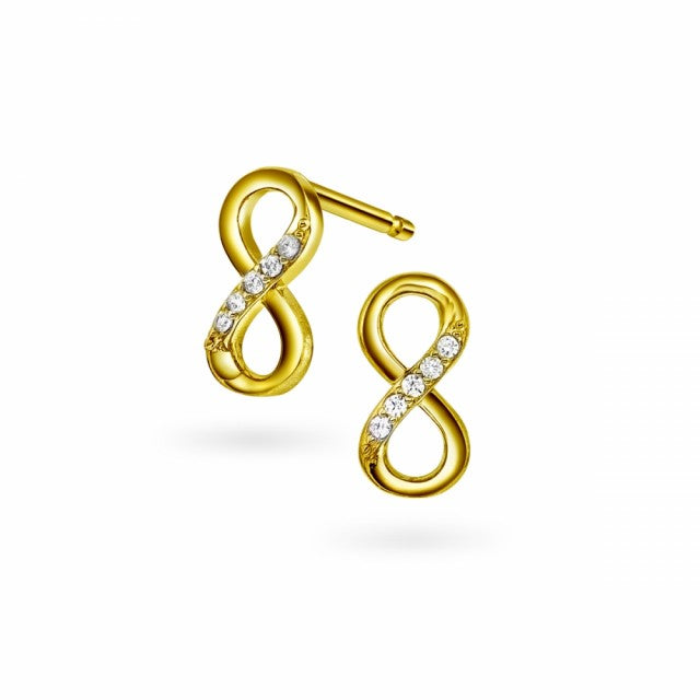 Øredobber i forgylt sølv med zirkonia - Evighet. H: 4 mm, B: 9 mm.