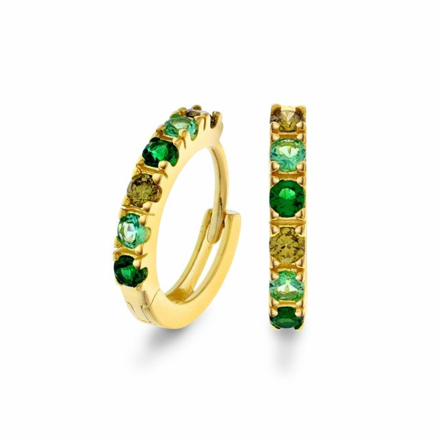 Øreringer i 925 forgylt sølv med grønn zirkonia. Diameter: 14 mm.