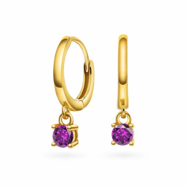 Øreringer i 925 forgylt sølv med lilla zirkonia. B: 1,5 mm. Diameter: 11 mm.