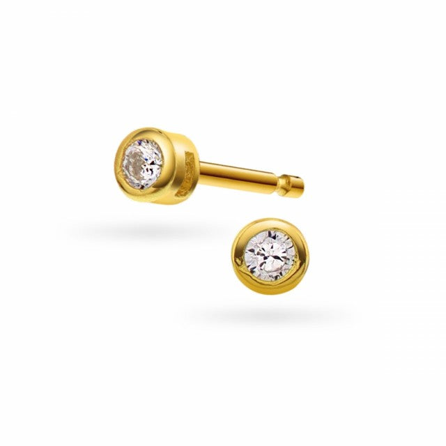 Øredobber i forgylt sølv med zirkonia, 3 mm