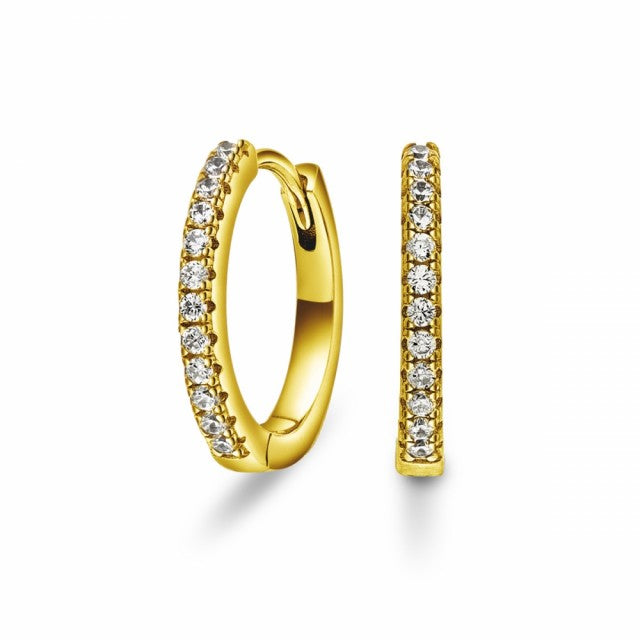 Øreringer i forgylt sølv med zirkonia, 15mm