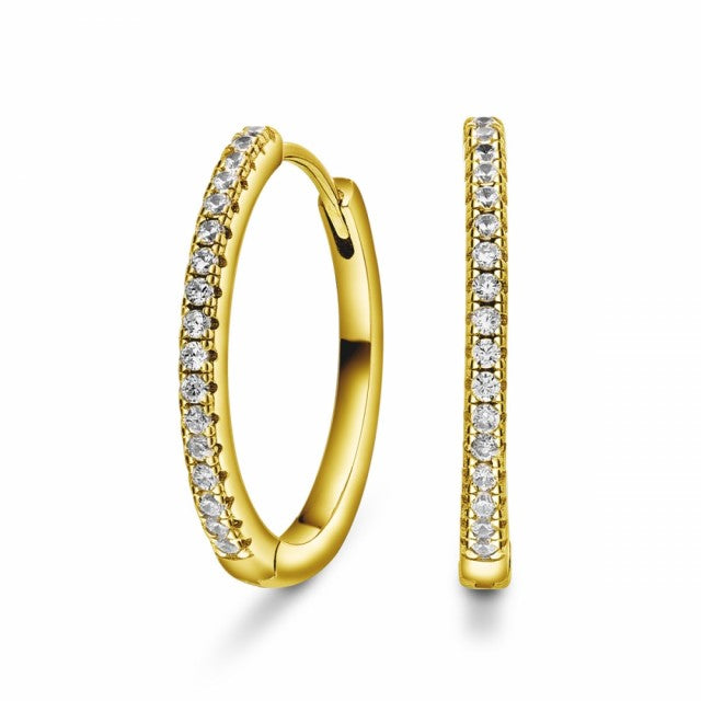 Øreringer i forgylt sølv med zirkonia, 20mm