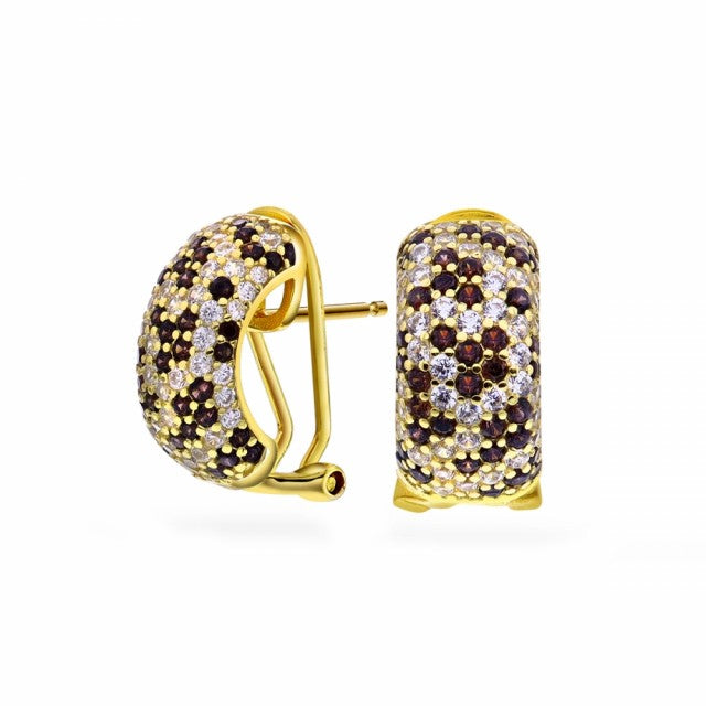 Øredobber i forgylt sølv med hvite og brune zirkonia. H: 17 mm. B: 8 mm.